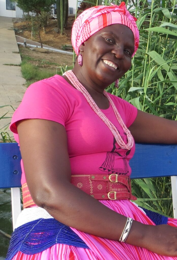 Ik deel mijn kennis in Afrika. Ik hou van creëren, mensen helpen en samenwerken. In Namibië en Kenia help ik vrouwen aan een inkomen, door samen sieraden te maken. We inspireren elkaar. In Namibië in Katutura met 3 dove vrouwen bij Stichting Penduka, met de WGG groep (YWCA), op de kunstacademie COTA en in Marakwet, Noordwest Kenia, in het afgelegen dorpje Endo. Uitgenodigd bij de University of Nairobi, School of the Arts & Design om mijn kennis te delen. Onderweg kom ik in Afrika natuurlijk veel mensen met mooie sieraden tegen en laten we elkaar onze sieraden zien (Oshiwambo, Himba, San, Masai, etc). Ik hou van deze mensen.